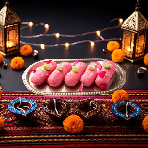 Anmol Pink Chum Chum Sweets on a tray. Diwali edition